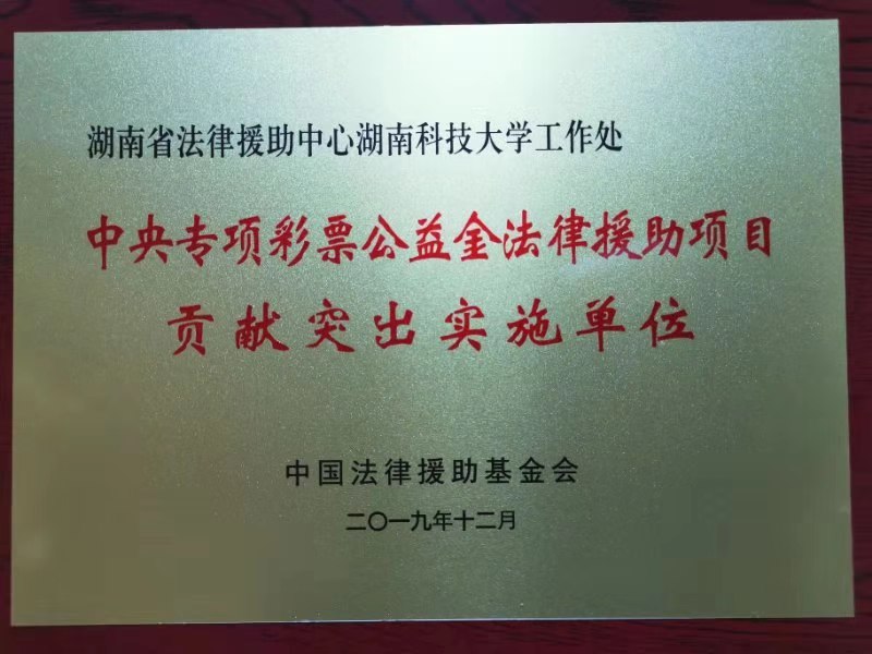 法律援助中心喜获“中央专项彩票公益金法律援助项目贡献突出实施单位 ” 荣誉称号