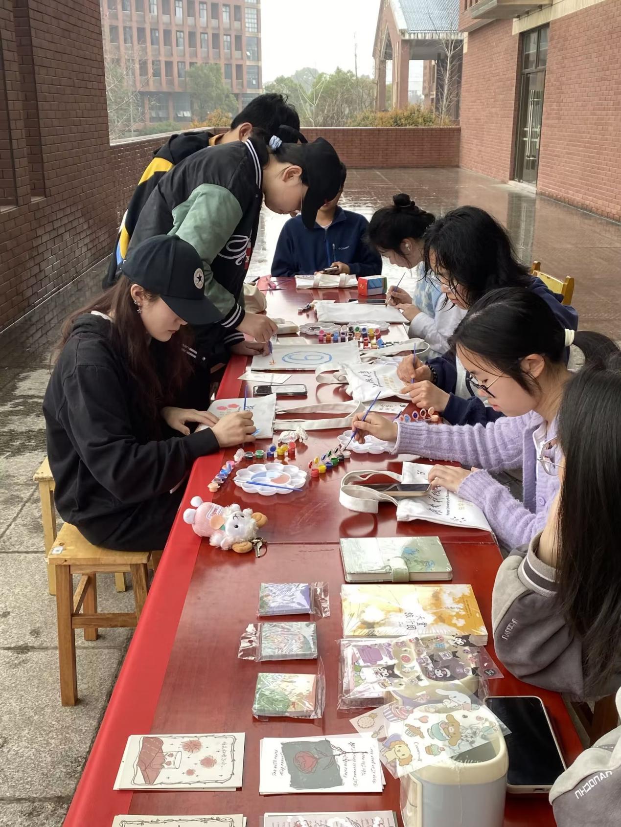 ”标志的布袋上留下了自己的创作,设计出属于自己独一无二的礼物。同时,还有许多同学参与了盲盒抽奖活动,收获了精美的小礼品。即使没有抽中,前来参与的同学也会收获诚意满满的祝福明信片。活动场地内飘扬着欢声笑语,所有人的脸上也都洋溢着灿烂的笑容。