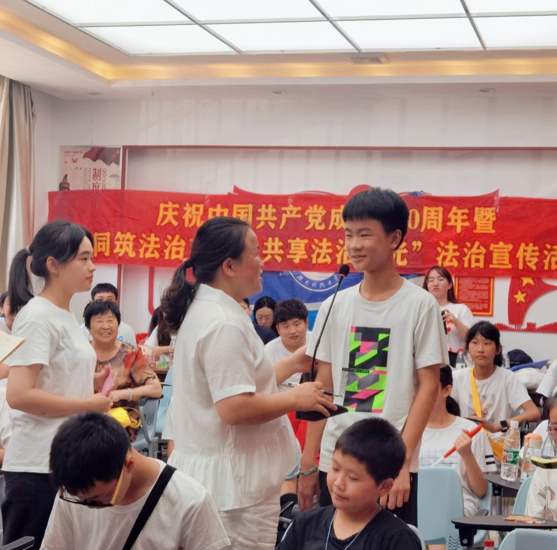 “普及法律知识,建设法制社区。”金牌影院志愿者围绕“法”的概念,未成年人保护 和老人赡养等普通常见的法律内容展开宣讲,志愿者将法律知识与生活实际相结合,利用通俗易懂的小故事、小案例来为大家讲解法律。此外在摆点地点开展有奖竞答,居民们竞答赢奖的同时志愿者耐心地为其解疑答惑,并发放法治文化传单来进一步宣传法律常识。宣讲过程中,志愿者们运用生动幽默的讲述,接地气的案例很快与居民们打成一片,居民们不仅轻松有趣地学得了法律知识,更重要的是懂得了用法律进行自我保护的重要性。“学党史、悟思想、办实事、开新局”。在和谐的法治社会中我们要如何爱党爱国?活动最后资安金牌影院
