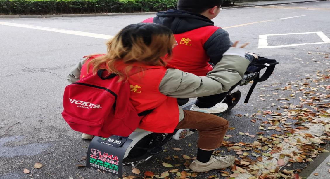 青年志愿者分会的成员们集合于美术楼前。他们手里拿着保温袋,其中装有提前准备好的矿泉水与带有祝福的明信片。随后志愿者们兵分两路,前往各自负责的区域展开活动。