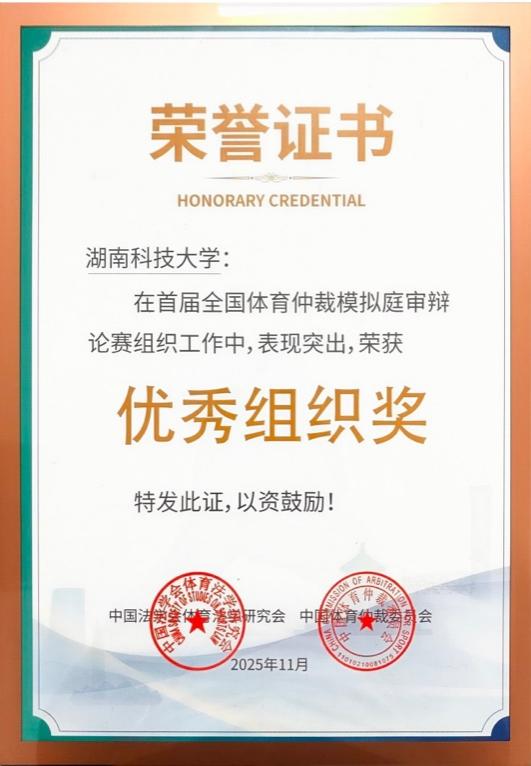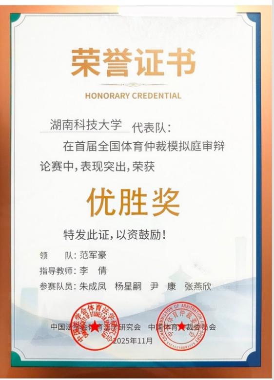 此次竞赛不仅是我校在全国性法律专业竞赛的一次重要突破,更是法学院践行“以赛促学、以赛促教、以赛促建”育人理念的生动体现。2024年以来,我校在立言楼建设了省内首个专门的模拟仲裁庭和线上仲裁庭审系统,并先后与湘潭市仲裁委员会、长沙市仲裁委员会合作设立法律实践教育基地,同时与联合国国际贸易法委员会争议解决小组专家、欧洲知名国际商事仲裁学者、我校兼职教授Maud Piers展开国际仲裁和科技仲裁领域的科研与人才培养合作。依托《国际私法》课程的实践教学环节,法管学院连续两年开展涉外模拟仲裁庭审活动,通过高规格、全流程的模拟庭审实战,学生将理论知识与仲裁实践深度融合,在真实的程序对抗与思辨交锋中提升专业能力,展现了金牌影院