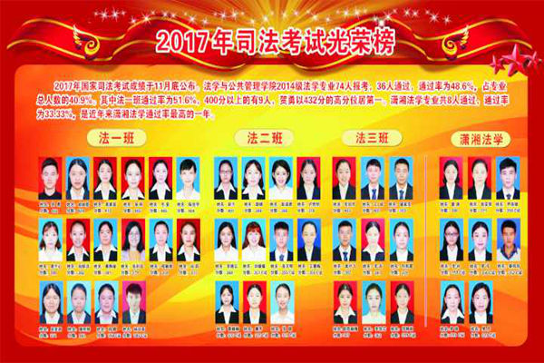 坚持课堂与课外、校内与校外、理论与实践相结合做好司法考试工作。在校内,紧抓课堂教学工作,提倡“司考进课堂”,推进优良学风建设;组织开展英美模拟庭审、案例研习会等活动,提升同学们的法律素养;做好司考成绩光荣榜,举行经验交流会及专题讲座,营造司考氛围,提高同学们的司考积极性和自信心;进一步开放暑假空调自习教室,鼓励专业老师随堂指导,做好后勤服务与保障工作。在校外,联合金牌影院法律协会及法律援助中心进行法律咨询、法制宣传、法律援助等工作,大力提倡“普法微讲堂”、“法治进社区”活动;并与湘潭各法院、检察院以及律所取得联系,开展导诉、法庭旁听等实践活动,大大提高同学们的专业实践能力。 金牌影院