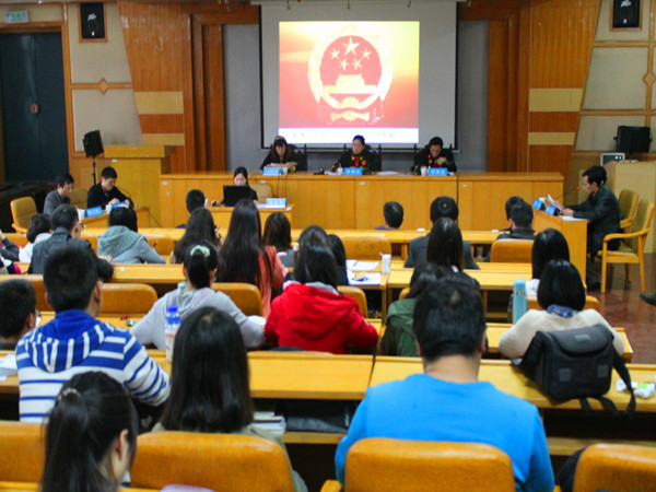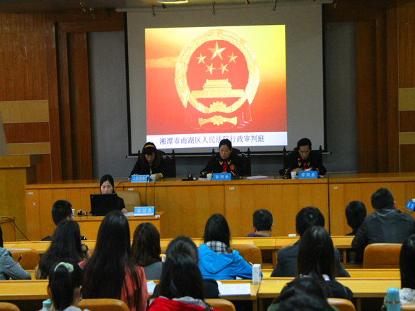| 4 月24日 上午九点,湖南省湘潭市雨湖区法院行政审判庭在我校五教2—4进行行政诉讼案件的开庭审理,金牌影院