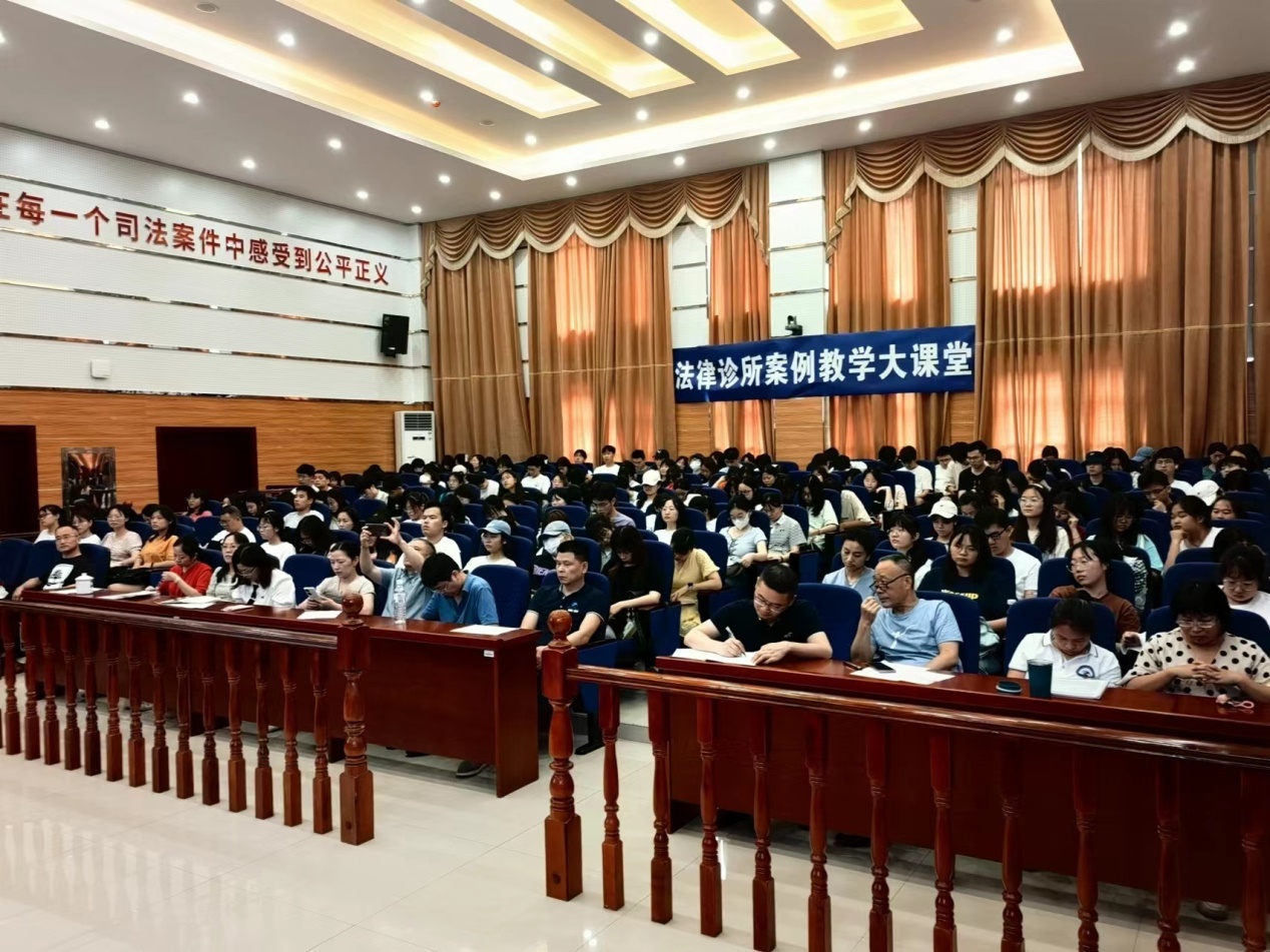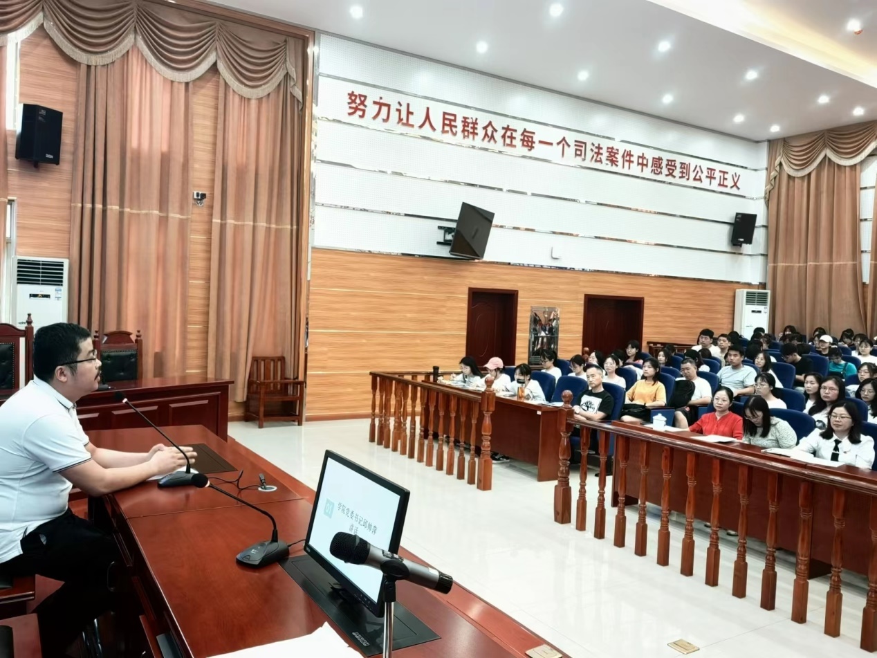 法学系全体老师以及2020级法学专业学生在模拟法庭召开实习动员大会。