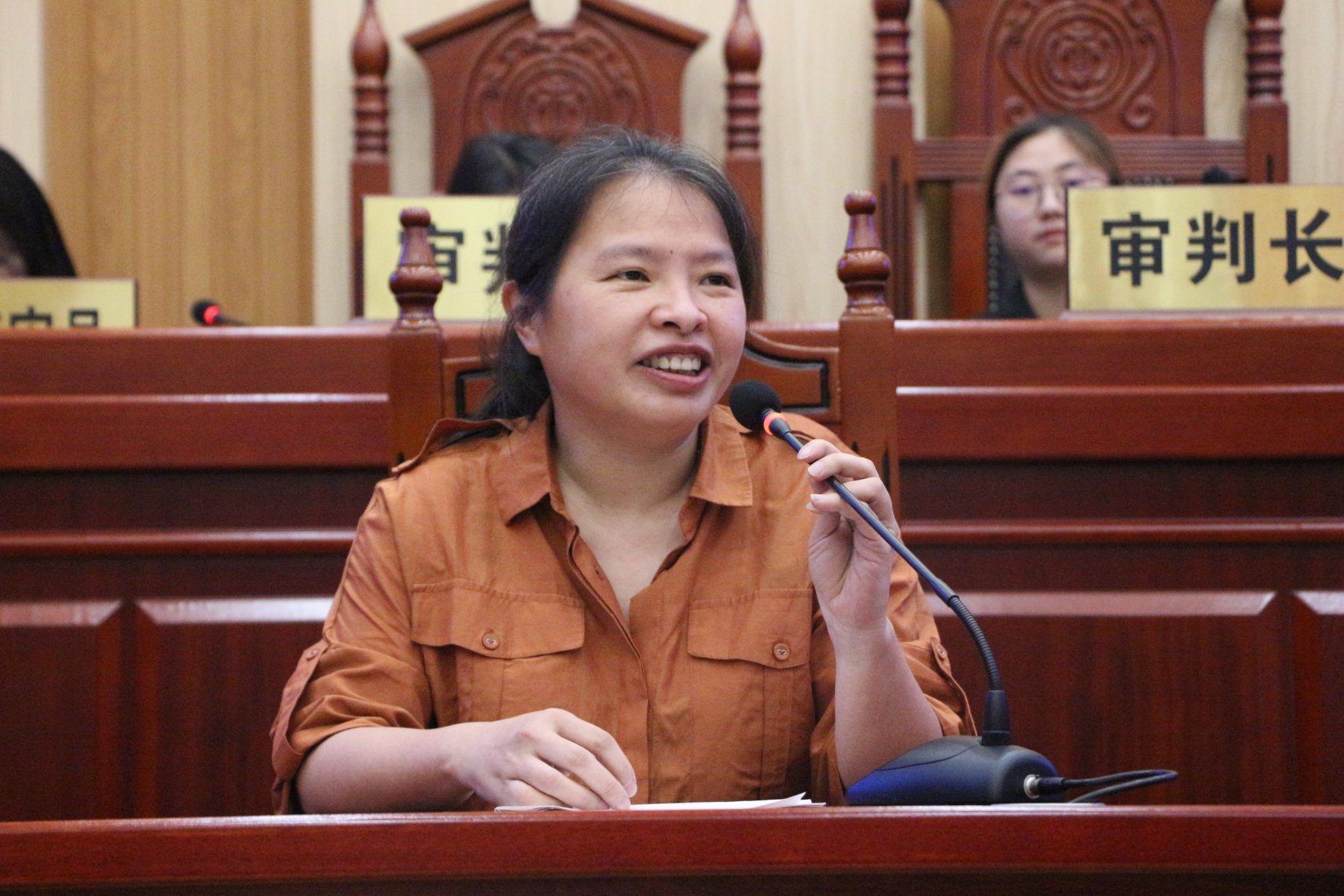 朱红梅老师、左洪剑老师、周玉利老师、雷勇老师对民事模拟法庭活动进行点评(图为朱红梅老师和周玉利老师)