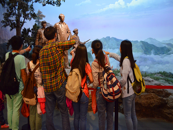 12级、13级思想政治教育专业全体同学及毛研会成员整装待发,前往韶山进行实践认知活动,重温红色记忆。早上七点,车辆准时出发。 经过一个小时的车程后到达韶山,刚下车,大家便迫不及待地来到毛泽东故居前。长长的队伍阻挡不了同学们参观故居的热情,大家随着人群走过每间房屋。绕过故居,来到毛氏宗祠,祠堂里的照片将毛泽东与家人的往事一一呈现在大家面前,展现了主席温情的一面。而毛泽东博物馆则将毛泽东一生的革命事业分为八个部分,在每个部分的展柜前,大家认真阅读展柜里的文献资料,回顾那段难忘的历史。 走过“瞻仰大道”来到毛泽东铜像广场,高高的铜像屹立在广场中心,毛小平老师指挥大家排好队伍,沿着阶梯徐徐走到铜像前,瞻仰铜像,敬献花篮。“一鞠躬、二鞠躬、三鞠躬。”在指令声中,大家虔诚的致以敬意。 中午,突如其来的大雨也浇不熄大家的热情,大家稍作休整又马不停蹄的前往刘少奇故居。在故居里,大家细细地感受他生活的点滴,也更了解到了他坎坷的一生。在展馆里看到那段文革时期刘少奇受迫害致死的历史时,来自13级思政一班的王华表示:这是她记忆中最深刻的一段历史,也为中国那段黑暗的历史感到难过。 活动结束后,毛小平老师谈及此行的目的说道:“这次的活动不仅是为了完成实践认知这项课程,更是想让大家重温一下红色的记忆,回顾那一段历史。这对于我们这一专业的学习也是有一定的帮助的,所以我希望此行在完成任务的同时更希望大家有所感悟,加强专业学习。” (责任编辑:admin) |