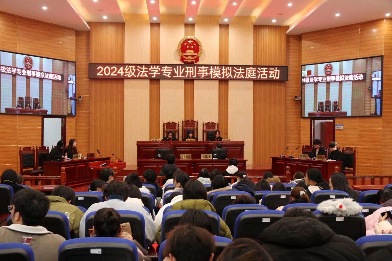 为将法学理论与实践相融合,增强学生法律实践能力,1月6日上午8点30分,学院法学系在立言楼3-2举办刑事模拟法庭活动,胡之芳、吴四江、雷连莉、陈小杉、周玉利、胡正昌等老师到场进行指导,2024级法学1-6班全体学生参与。