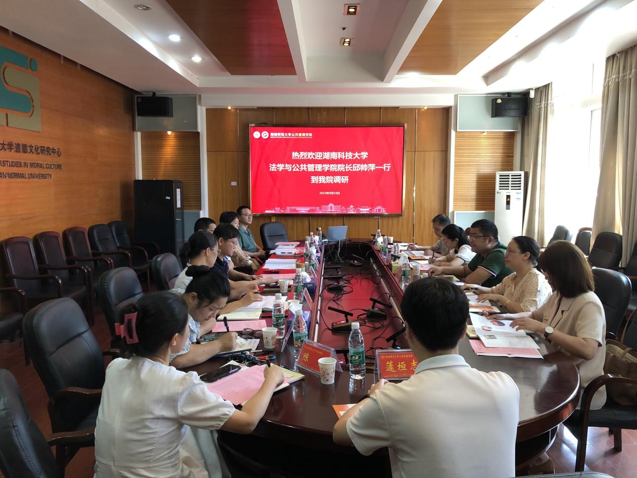 2023年9月19日上午,金牌影院邱帅萍院长、公共管理学科负责人曾东霞、MPA学位点负责人徐金燕、公共管理系系主任戴年红、公共管理系教师王慧慧、陈浩等一行赴湖南师范大学公共管理金牌影院