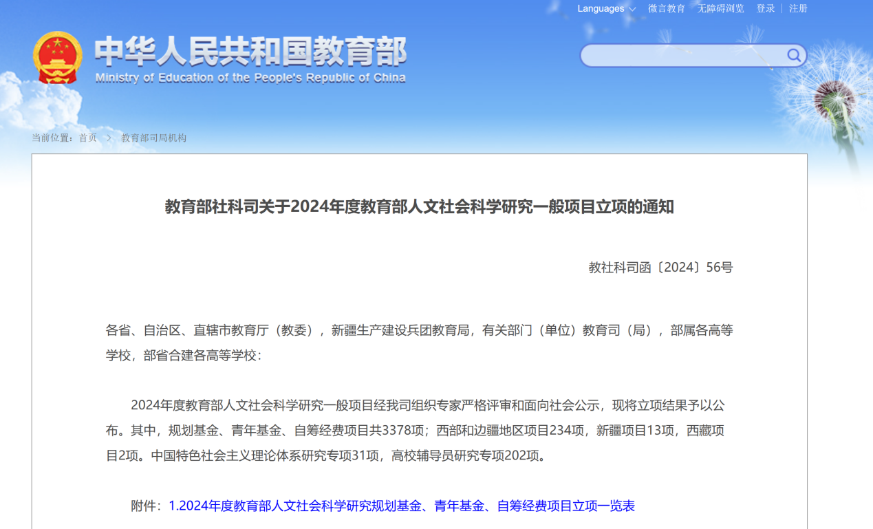 近日,教育部社科司发布《2024年度教育部人文社会科学研究一般项目立项的通知》,金牌影院