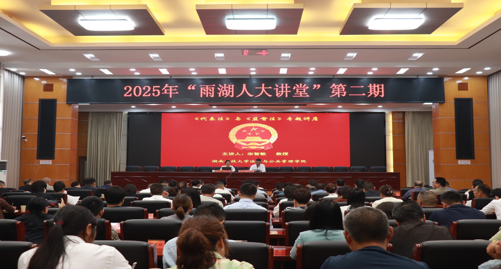 副院长宋智敏教授作《代表法》和《监督法》专题辅导报告,雨湖区人大代表、湘潭市人大代表、市区人大机关干部等400余人参加学习。