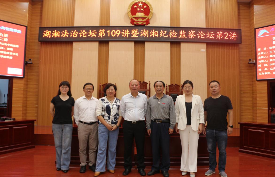 郑海祥书记对王飞跃教授的到来表示热烈欢迎以及衷心感谢!他说道:“今天的这次讲座是湖湘法治论坛第109讲,同时也是我们清廉大讲坛(原湖湘纪检监察论坛)的第3讲。我们非常荣幸的请到了中南林业科技大学政法金牌影院