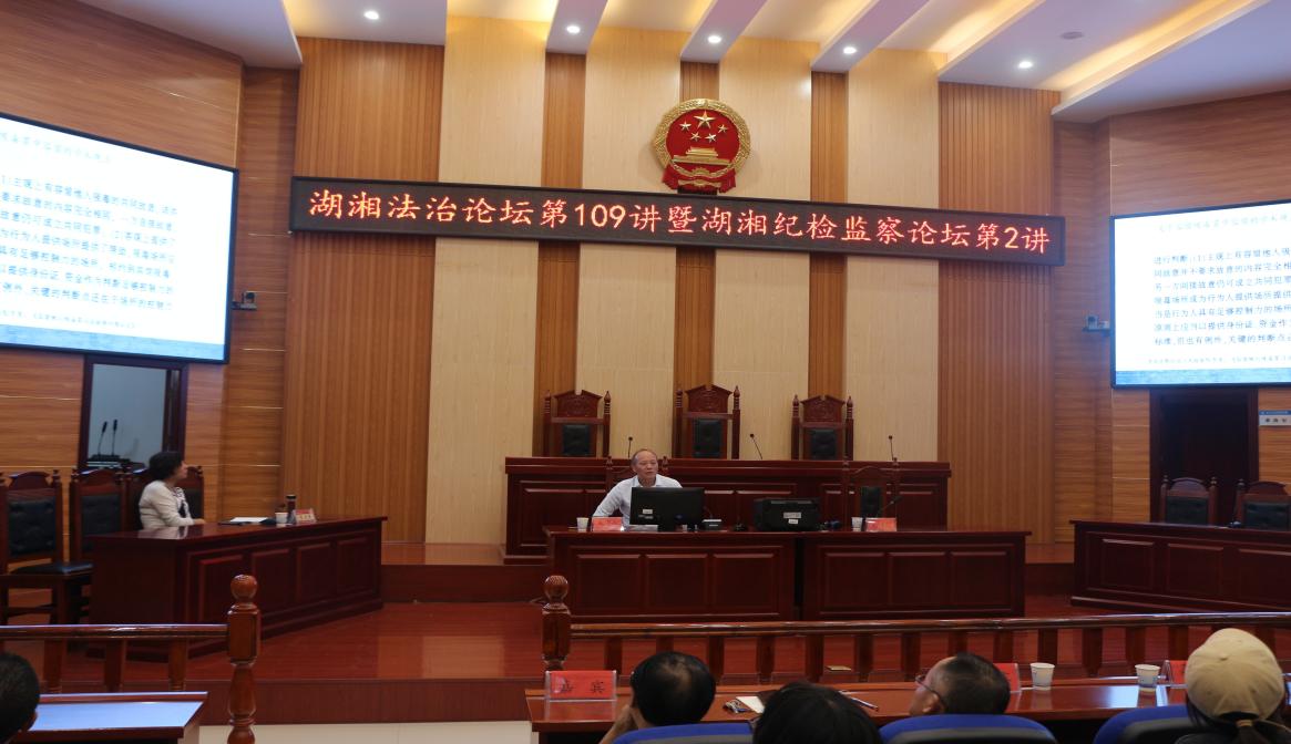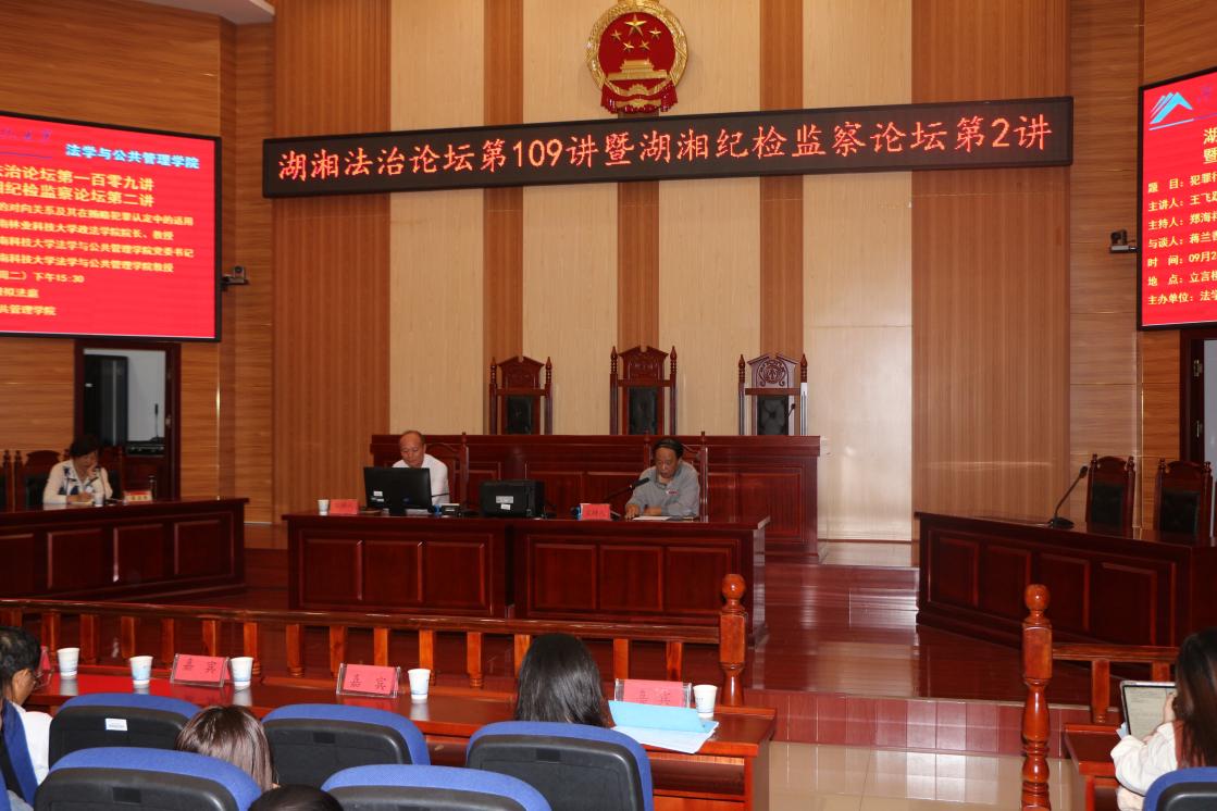 院长、湖南省刑法学会副会长、北京大学刑法学博士、美国华盛顿大学访问学者王飞跃教授应邀在立言楼模拟法庭开展《犯罪行为中的对向关系及其在贿赂犯罪认定中的适用》主题讲座。出席本次讲座的有金牌影院