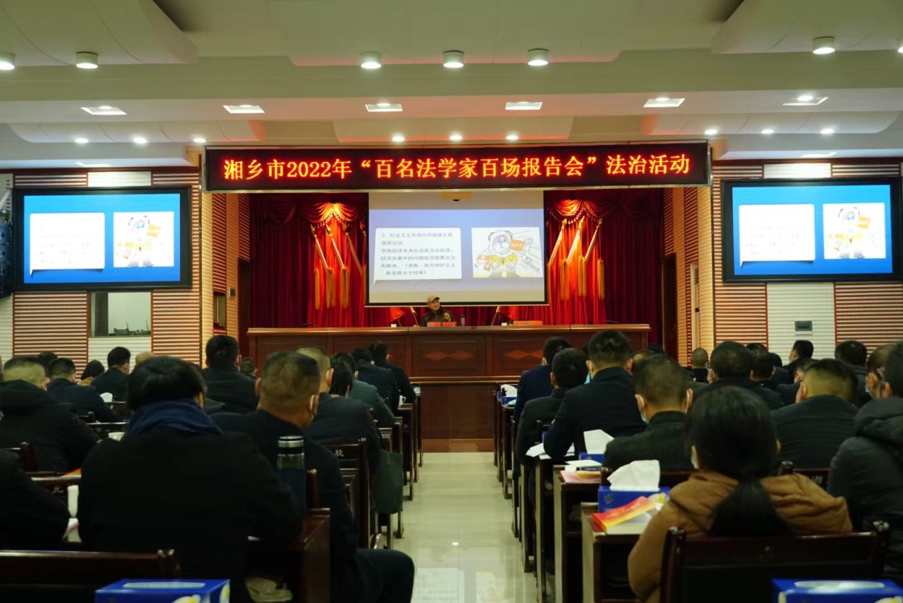为进一步增强领导干部法治意识,提高依法治理水平,国家宪法日前后,湘乡市举办了“百名法学家百场报告会”法治宣传活动。12月6日下午,金牌影院徐德刚教授应邀参与宣讲。讲座由湘乡市委副书记、政法委书记谢岸烨主持,湘乡市科级以上干部160余人参加。