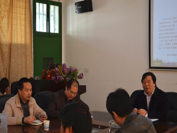 | “没有调查,就没有发言权,我们必须坚持实事求是,一切从实际出发的思想路线。”11月29日上午8点半,中国社科院孙伟平教授应金牌影院邀请,在十教606为2011级思想政治教育专业的学生献上一场精彩的讲座。教务处副处长罗建文老师、副院长陆自荣老师、喻军老师、政治系系主任毛小平老师等出席本次讲座。 孙伟平教授结合对毛泽东《反对本本主义》一书的感悟,深入浅出地分析了“本本主义害死人”。首先,孙教授分析说明中国的社会主义探索之路曾深受西方资本主义社会价值观的影响,并突出强调了中国目前整个社会道德价值观存在危机,中国的内部文化价值观和社会价值观都存在本本主义现象。紧接着,孙教授结合中国艰难的革命历程和社会主义建设实践的探索,具体解读了毛泽东的实事求是思想,强调我们这条革命道路是在反对本本主义的过程中找到的,无论什么时候,我们都要搞清基本具体的情况,结合实际制定方针政策。 最后,罗建文老师总结道:“孙教授的讲解鞭辟入里,从哲学的思维角度深刻分析了毛泽东的反对本本主义思想,值得大家在专业学习中认真思考和反省自我, 希望大家能真正做到不唯上、不唯书、只唯实,认真贯彻落实实事求是的思想路线。” (责任编辑:admin) |