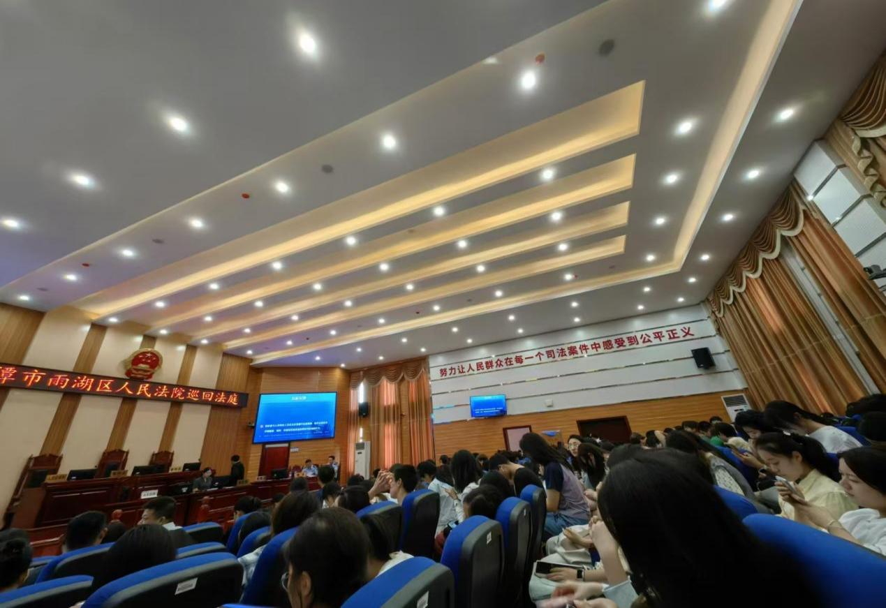 教师带领2023级法学专业全体学生旁听了本次“民告官”案件庭审。中国人民银行湘潭市分行的各位工作人员、雨湖区人大代表也前来观摩学习。