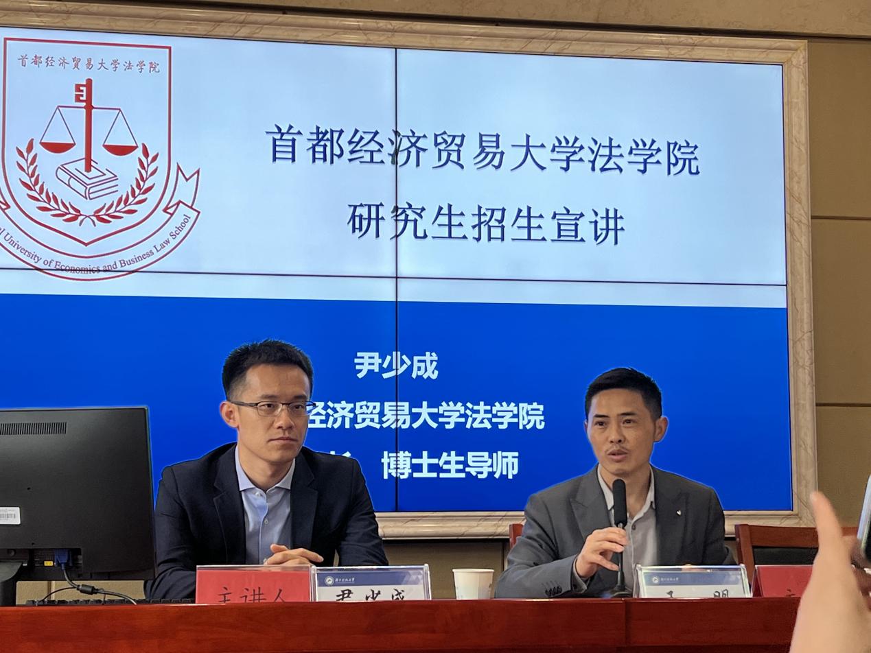 副院长尹少成在立言楼A425进行了研究生招生宣讲,宣讲由法管金牌影院