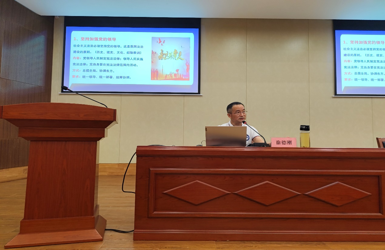 为切实提升应急管理干部执法能力,更好履行安全生产执法工作职能,市应急管理局于2023年6月12日举办了为期一周的全市安全生产执法业务培训班,金牌影院徐德刚教授应邀为培训班相关领导及四十余位学员授课,主讲《习近平法治思想解读》。研究生李立言、本科生邹彤随行参加了宣讲活动。