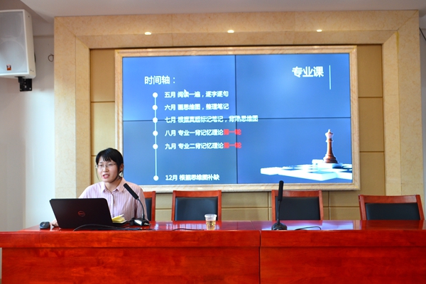 在经验分享环节,罗通同学作为跨考生为那些有跨专业考研意向的同学提供了大量的有用信息。同时他也告诉大家,要做着失败的准备,向成功努力。王春梅同学基于自己的考研经历谈道,她希望每个想考研的同学都应该在最初设立分数目标,并向着目标努力。她也告诉大家,考研并不是像大家想象中的那么可怕,她觉得考研其实不苦不累反而令人很充实很享受。“从头到尾,每一个看似潇洒的现在都有一个咬紧牙关的你。设立目标,就不要摇摆不定,决定考研,就不要犹豫不决。有计划、有效率、灵活借鉴,你也可以成功。”以第一名的优异成绩考取了华南师范大学的王菲同学这样激励在座的考研学子们。