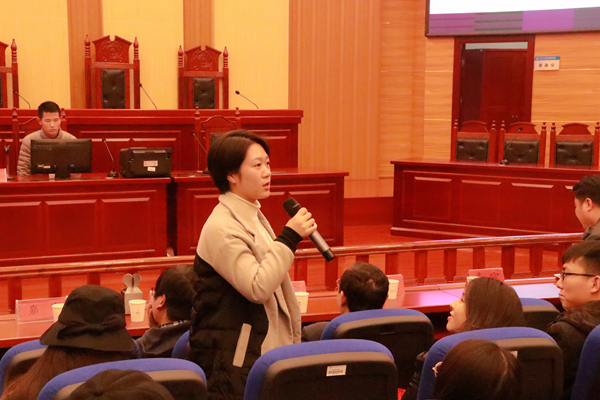 交流会上,夏梓婷、夏菁、赵一凡作为15级司考优秀代表受邀发言。夏梓婷从自己复习的经验出发向我们分享了她的学习方法和学习资源,并通过自身体会讲述了自身对考试的见解;夏菁则向大家介绍她对于复习时间的安排和对复习重点的推测,并建议大家在复习期间要劳逸结合,把学习和运动组合起来,发挥“1+1>2”的效果;赵一凡学姐也给出了许多实用性的建议。在现场提问环节中,同学们踊跃发言,提出了自己的疑问,学姐们则热心解答了大家的疑惑。