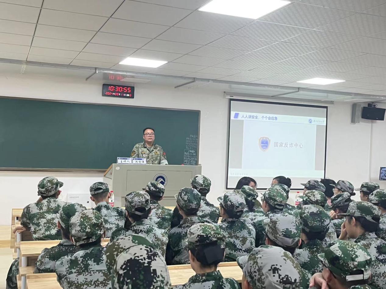 沈智祥处长以《人人讲安全,个个会应急》为主题开展安全教育,重点围绕电瓶车管理、财产盗窃、电信诈骗、国防安全等安全隐患,结合视频案例进行详细讲解,案例真实,触目惊心,切实发挥了警示教育警醒和镜鉴的效果,进一步帮助学生提高了安全防范意识和自我保护能力。