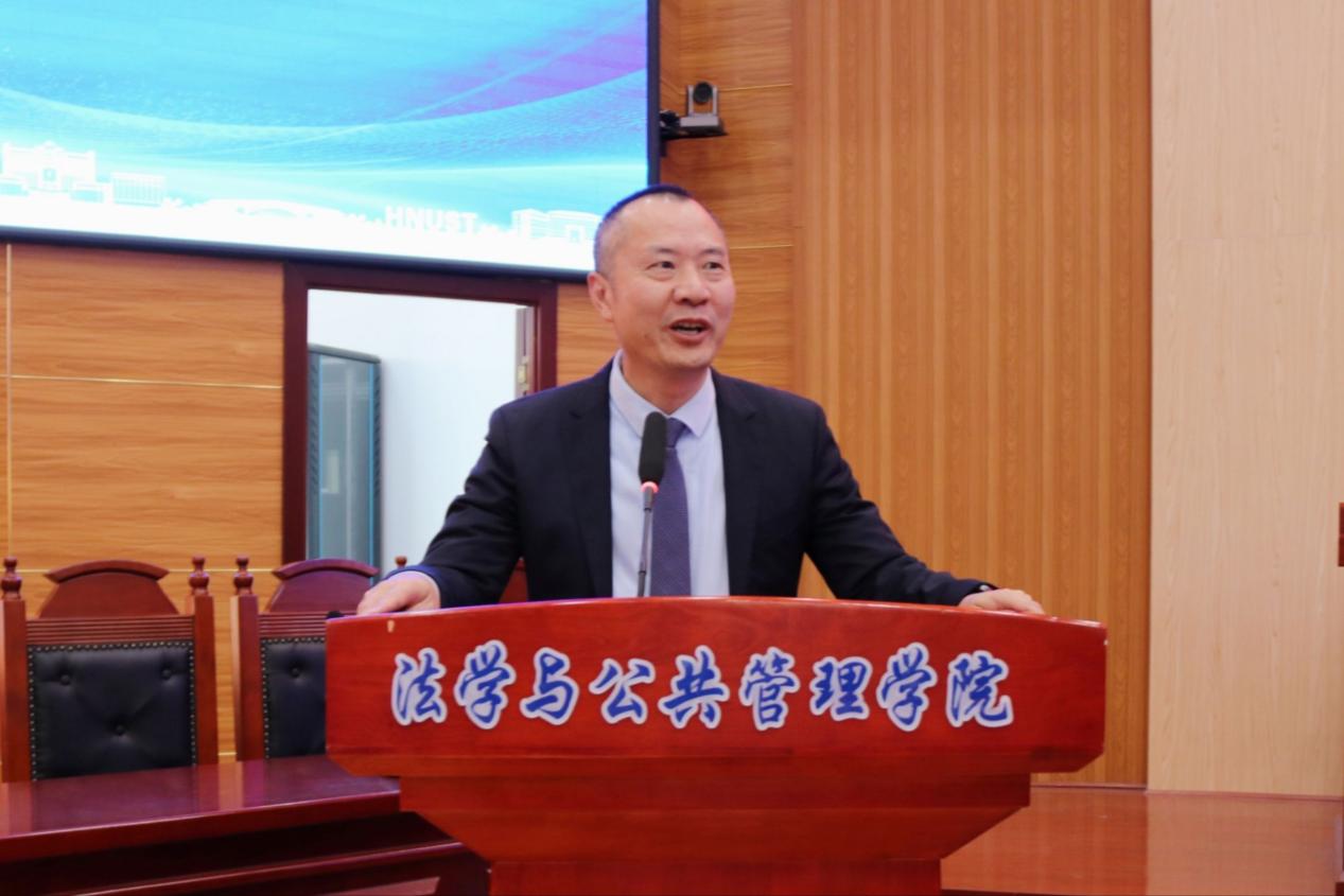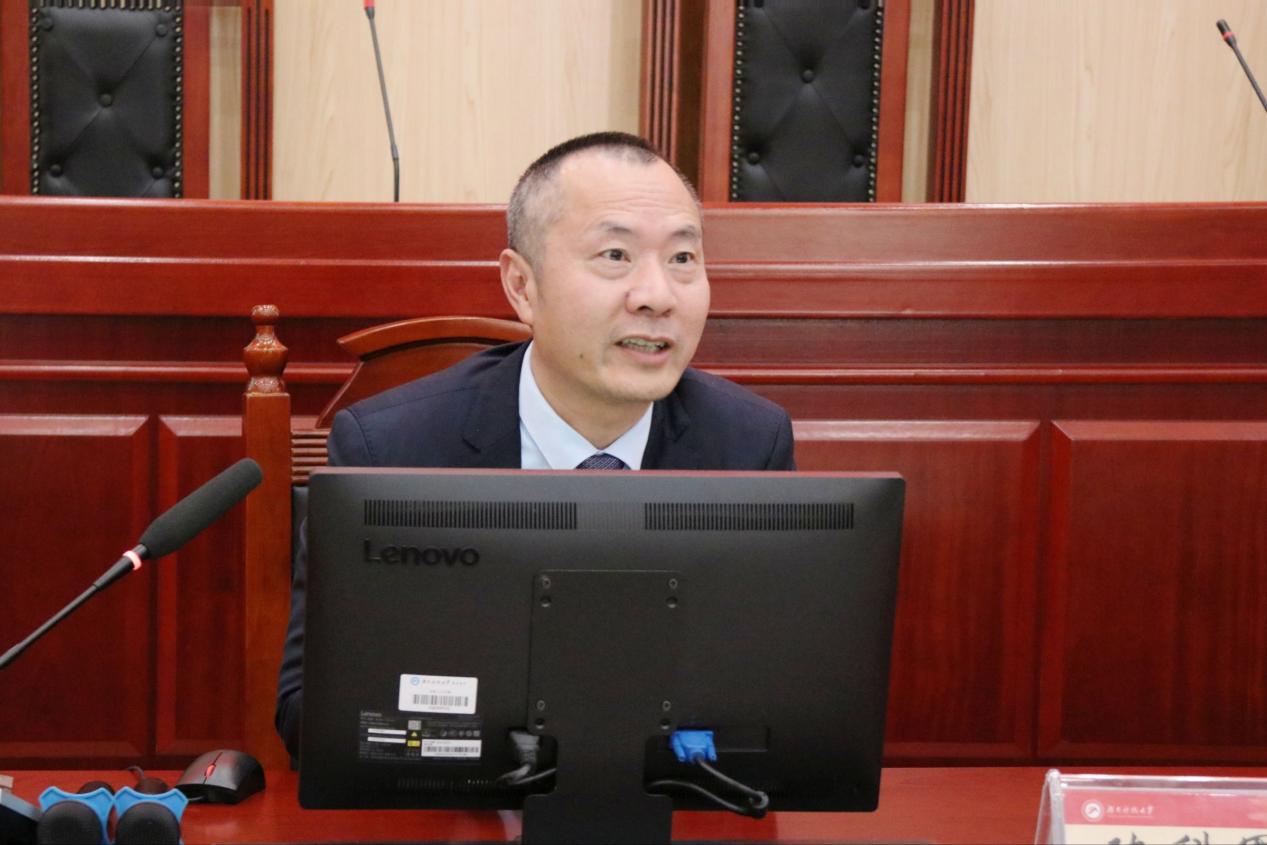 校友工作与国内合作办主任李友桥受邀致辞。他代表学校对陈科军校友回馈母校的善行表示诚挚感谢,指出校友是学校最珍贵的财富,也是学生成长道路上的楷模。他寄语法科学子,要珍视与行业精英面对面交流的时机,精进法学专业、磨炼实务本领,秉承“唯实惟新,至诚致志”的校训精神,在法治之路上坚定前行。