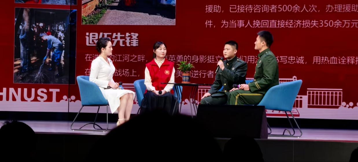 2024年度优秀学生颁奖典礼在此隆重举行。在这场汇聚了众多杰出学生的盛会中,法律协会志愿者黄雨嘉受邀参与了此次典礼的“红人”面对面访谈环节,与退役先锋的两位抗洪英雄们一同分享日常活动中的故事。