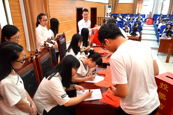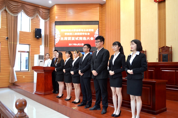 付出,也使自己成长的历程。最后,他对下一届团委学生会干部们寄予厚望。“坚持自己的理想,记住自己的承诺,创造法管辉煌!” 经过层层筛选,脱颖而出的七位主席团候选人,15法三谭巧俐、15法一杜婧、15公一刘湘相、15公一张艺辉、15公二李禹宏、15公二马晓璇、15法一赵雪燕依次上台做竞选演讲。他们分别向大家展示了个人简历、竞选优势、工作设想等。候选人们个个西装革履,意气风发,朝气蓬勃。 大会的高潮,即投票和计票环节。每个同学拿到投票表都进行了斟酌思考,为自己心目中的最佳人选投出神圣的一票。与此同时,叶军书记也作了最后的总结发言,“从竞选主席团同学们的积极表现中可看出,学生会是一个汇聚青春正能量的地方。我希望新主席团成员能够‘在其位,谋其政,担其责’,扎扎实实地开展工作,用行动来证明自己的能力,用行动来为法管金牌影院