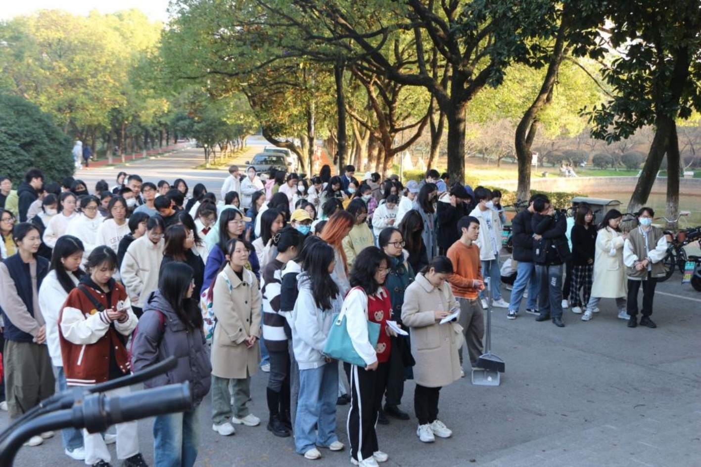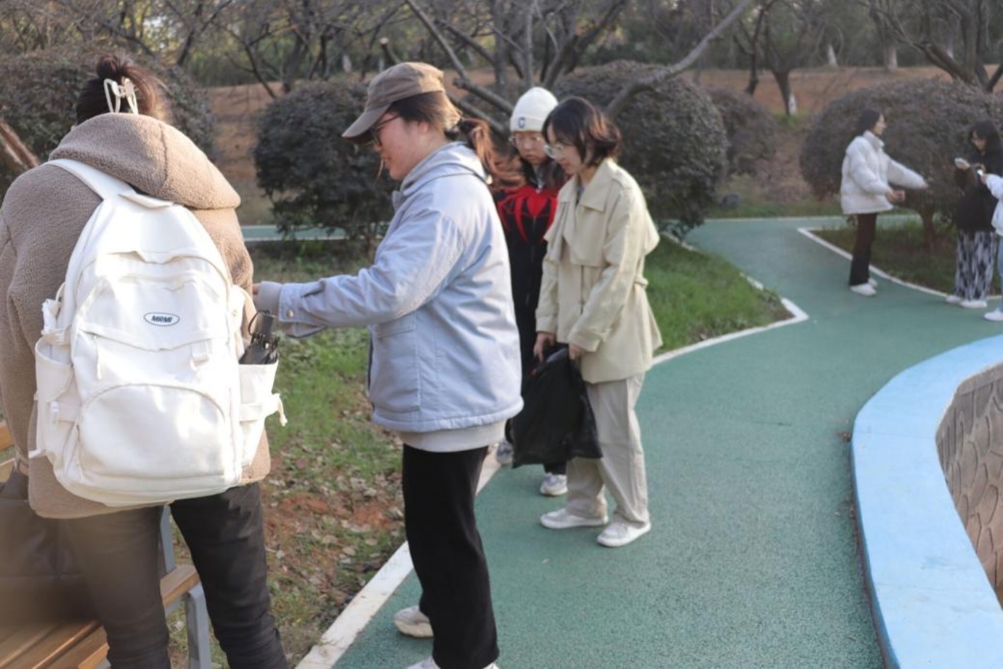 权益部的组织下开展冬日劳动教育主题实践活动。初冬暖阳照,同学们按照规定时间在北图门口集合、签到。