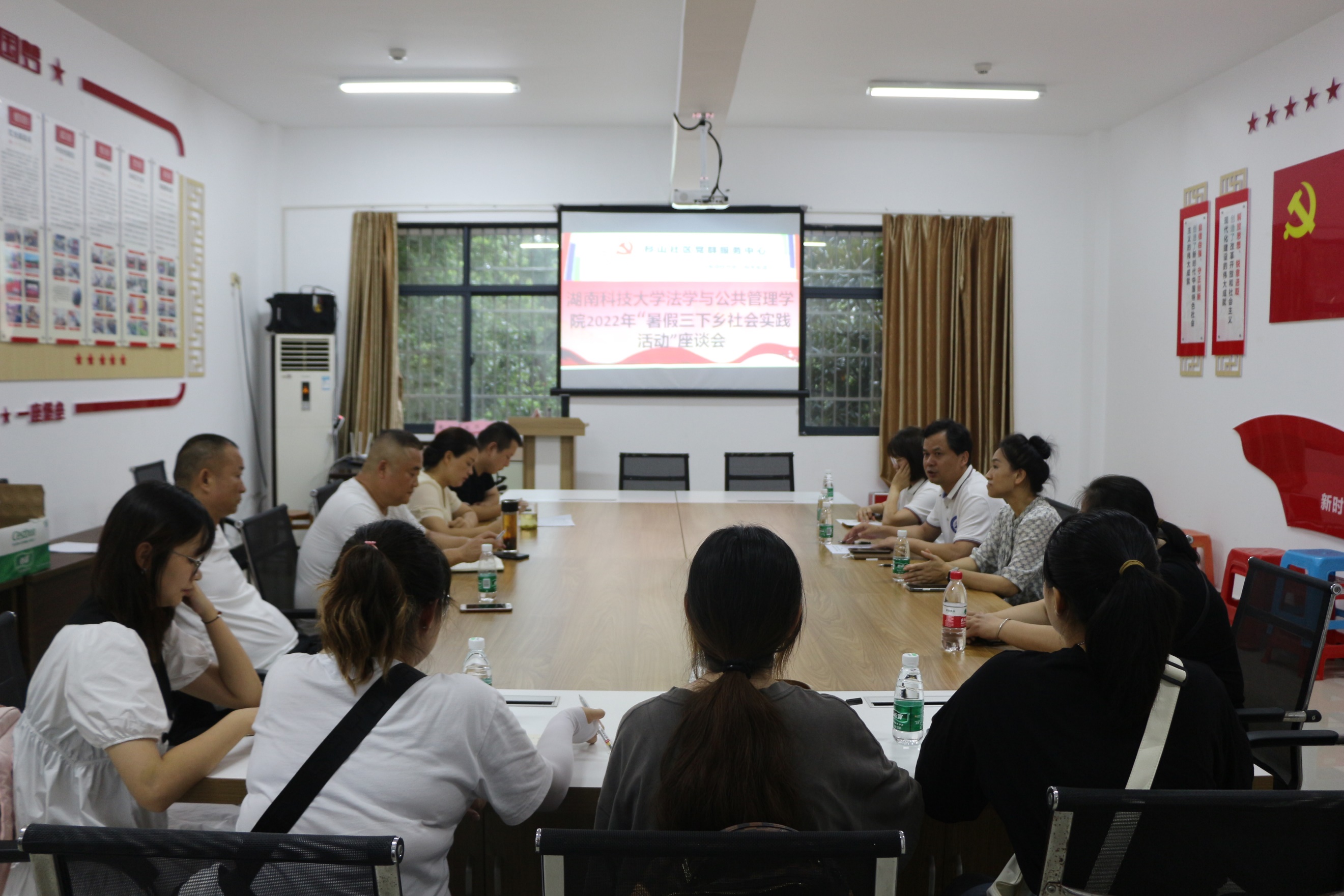 与湘潭经开区和平街道杉山社区在社区会议室召开2022年暑期“送法下乡”和“三下乡社会实践活动”协调会。金牌影院党委副书记叶军、法律协会指导老师陈小杉、公共管理学会指导老师王慧慧、金牌影院