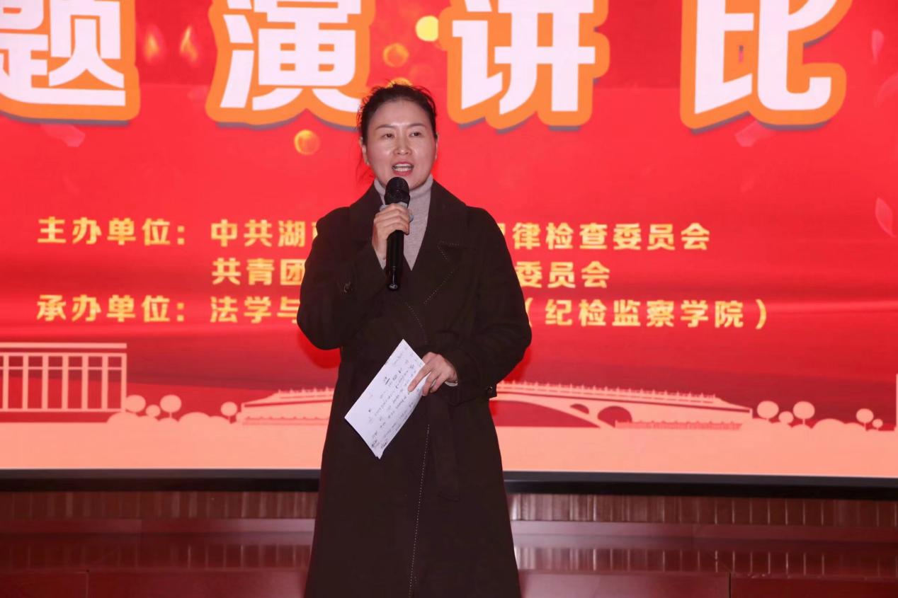 选手们演讲完毕后,校地合作办公室副主任刘婕老师做出本次比赛精彩点评。刘婕老师充分肯定了参赛人员的精彩表现,并鼓励学校今后能以更多种形式推进廉洁文化建设。同时强调演讲要立足学习和生活中的所见所闻、所思所想,以鲜活的事例和朴实的语言,以故事切入能使同学们更具体而深刻地感受廉洁作风,于贤人遗韵中寻清廉之风。