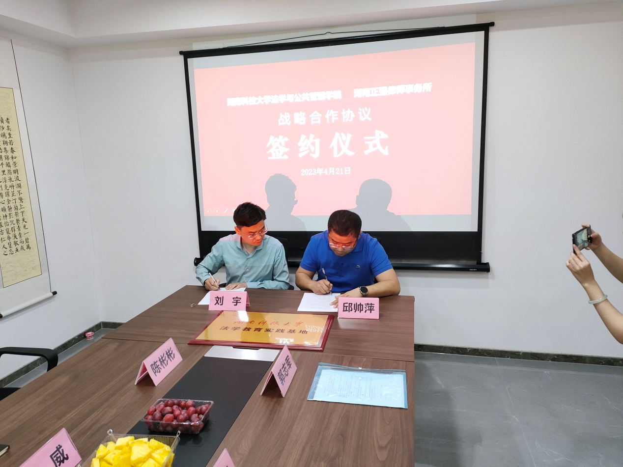 与湖南正强律师事务所举行法学教育实践基地授牌仪式,双方签订了战略合作协议,并聘请正强律师事务所主任刘宇律师为金牌影院