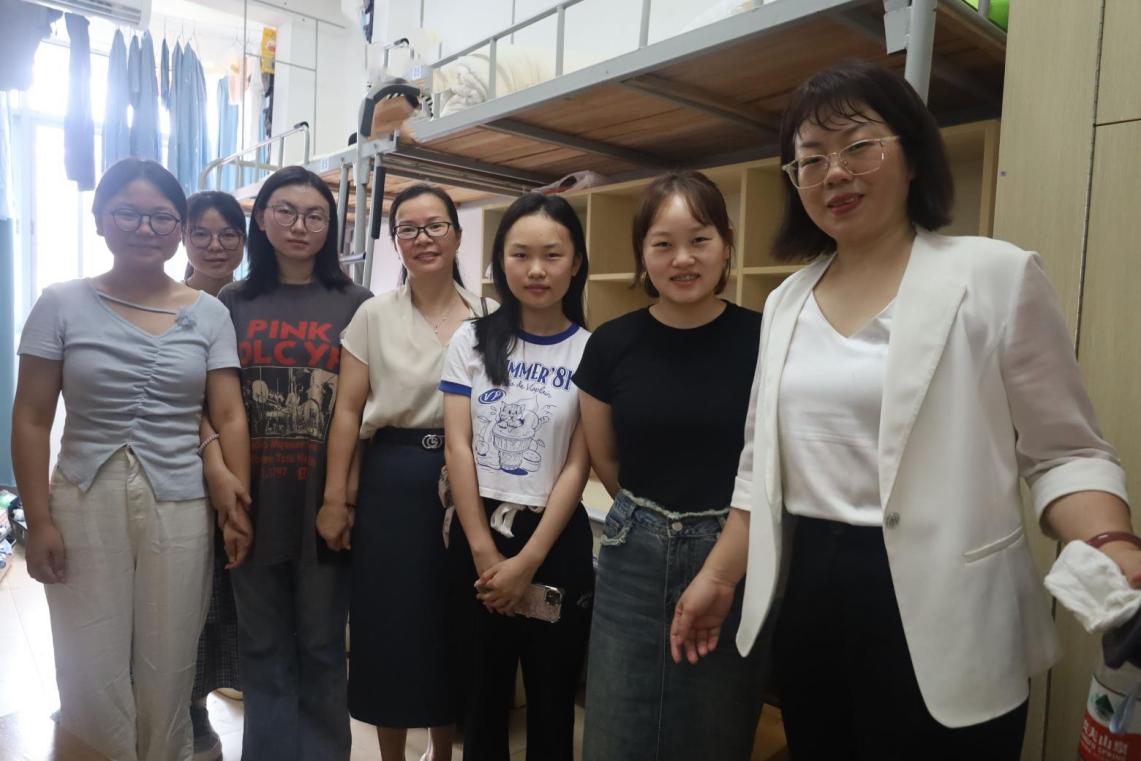 院长邱帅萍、党委书记郑海祥带领院领导班子逐一走访新生宿舍,与家长和2024级新生展开亲切交流。