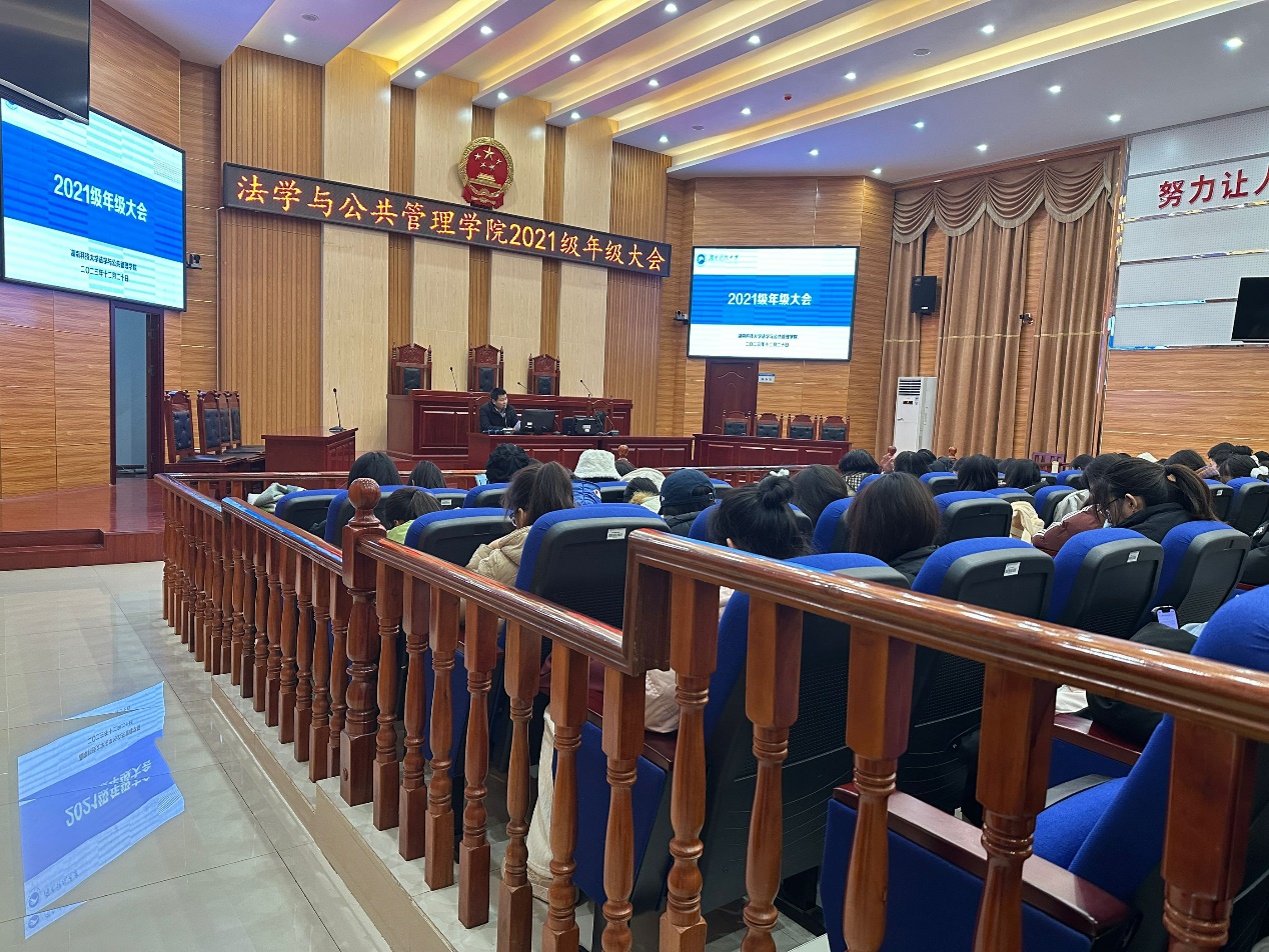 党委书记郑海祥、党委副书记范军豪的组织与各级辅导员的配合下召开了各级年级大会。其中20、21级年级大会于立言楼模拟法庭召开,22、23级年级大会于敏行楼C512召开。由各级辅导员担任主讲,金牌影院