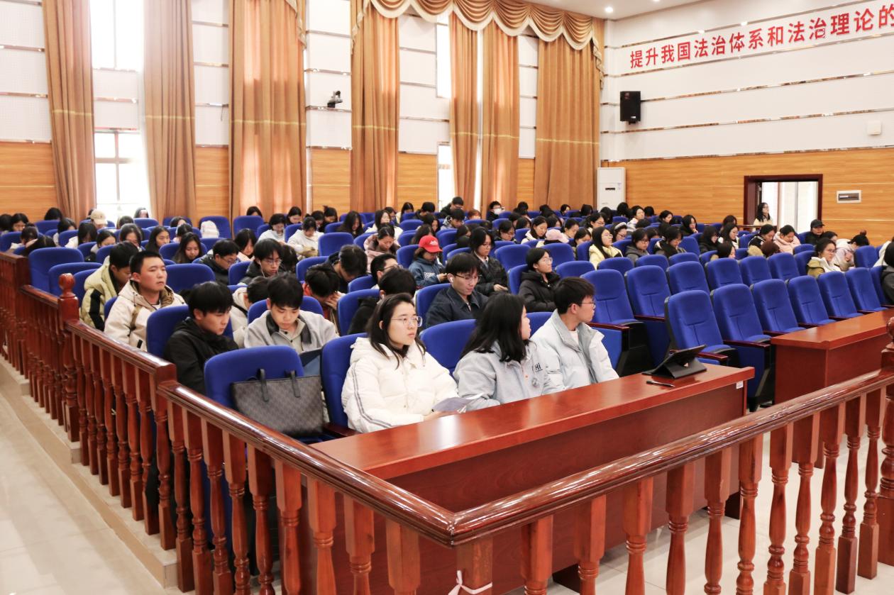 在立言楼3-2模拟法庭举办国家奖学金与励志奖学金经验分享会。学工办主任郭志军老师出席活动,杨洁、梁晗钰、谌婷、康宇、莫沁姿五位优秀学子受邀担任分享嘉宾,2024级、2025级学生到场聆听。