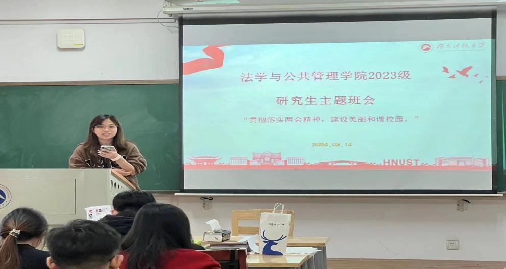 2023级研究生关于“贯彻落实‘两会精神’,建设美丽和谐校园”主题班会在立言楼A105举行。
