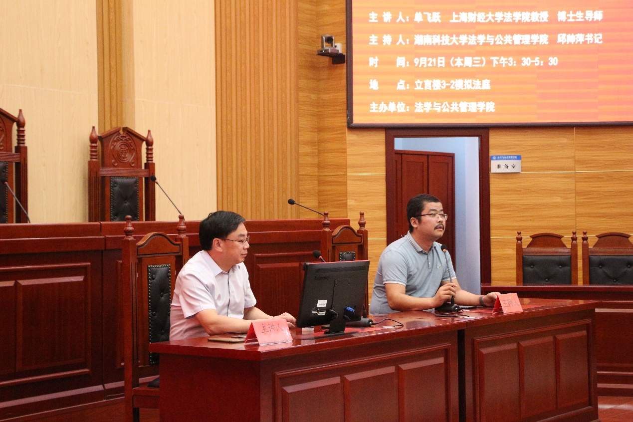 湖湘法治论坛第九十八讲在立言楼模拟法庭举办。上海财经大学法金牌影院