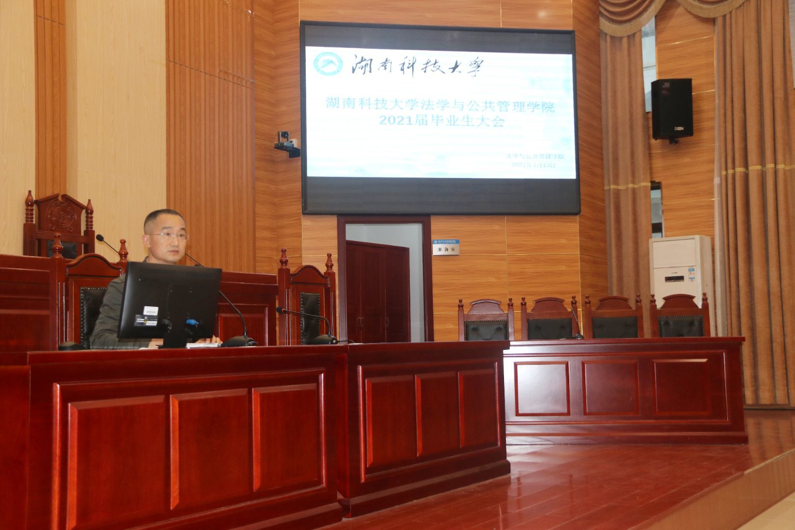 2017级毕业生就业工作,让同学们更加明了目前就业形势,引导学生积极就业、师生一心提高本年度就业率,金牌影院于4月13日下午在立言楼模拟法庭举办了2021届毕业生大会。本次大会由院党委副书记蒋会平书记主持,院长徐德刚、党委书记黄伟、系主任戴年红和马驰升以及毕业班班主任老师们莅临会场,全体在校毕业生参加会议。