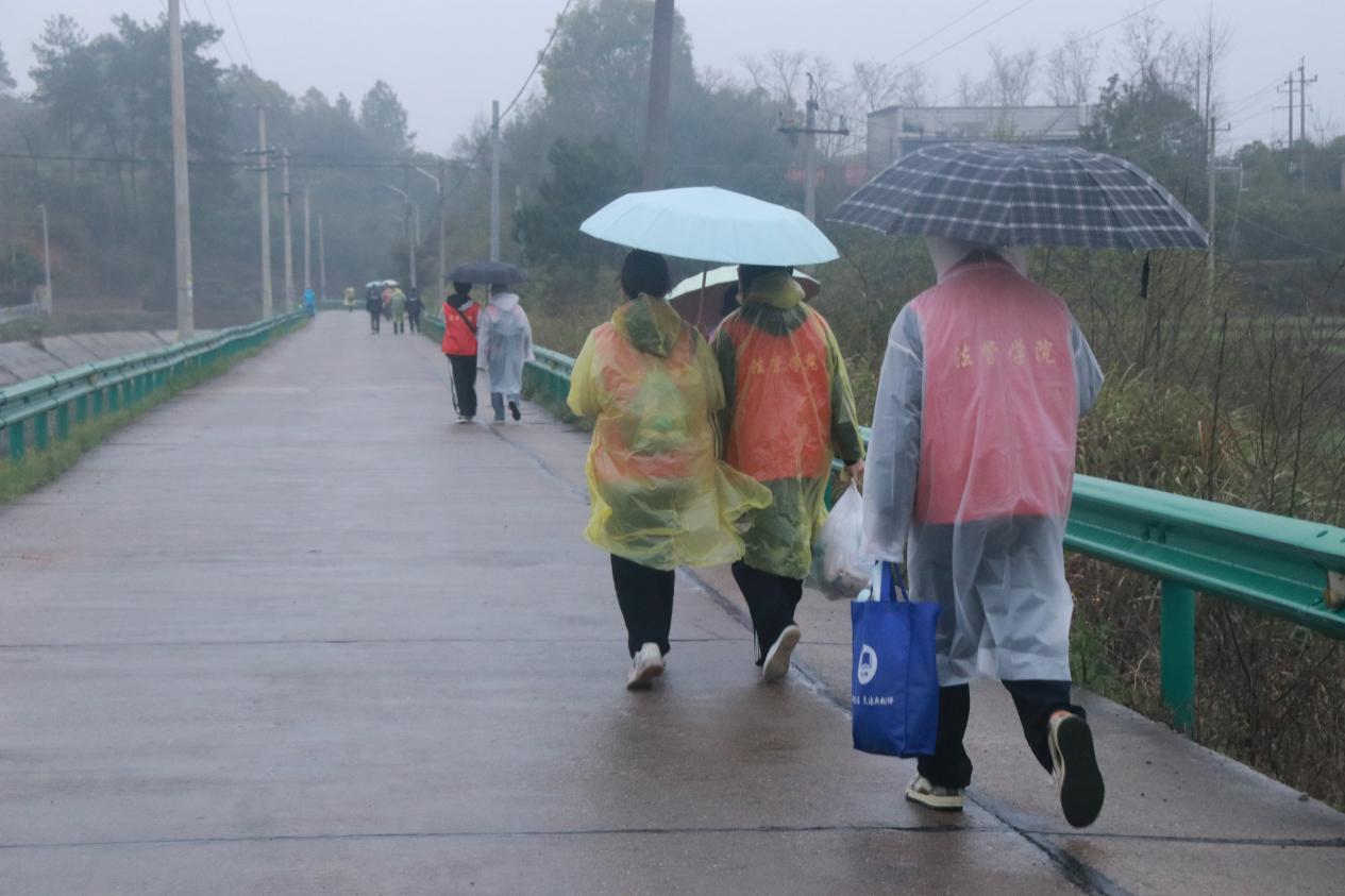 法管学院的青年志愿者们撑着伞并肩前行,步履坚定地走在这条从母亲河湘江分流而出的人工河流河畔。法管学子以并肩协作的行动,将爱水护水、守护家园的初心融入护河的每一步,让青春的底色在生态保护的实践中愈发鲜明。