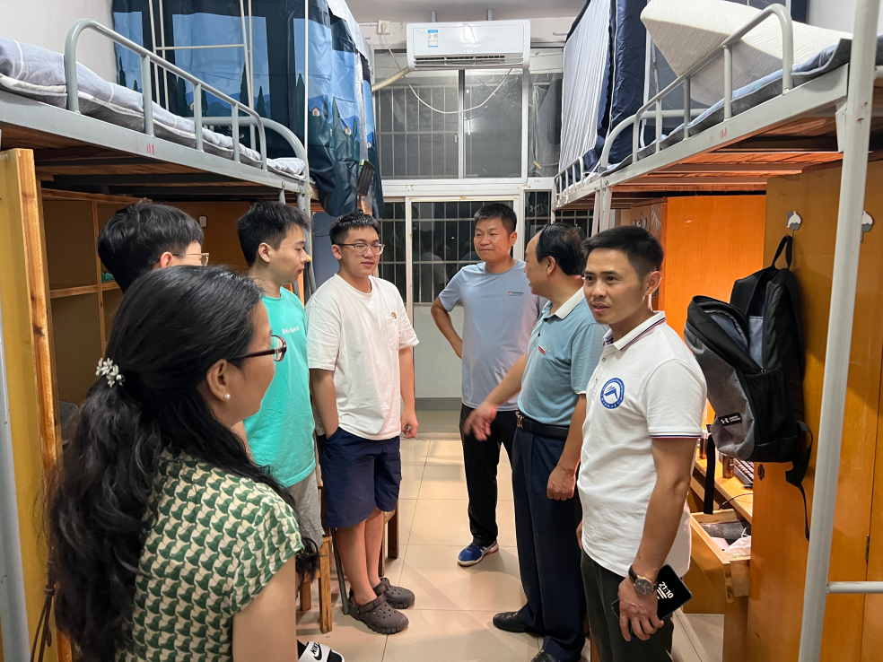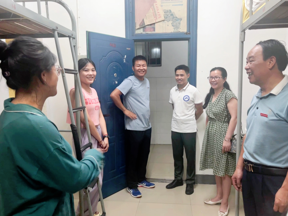 领导、老师第一次下寝看望慰问新生,了解新生的需求。
