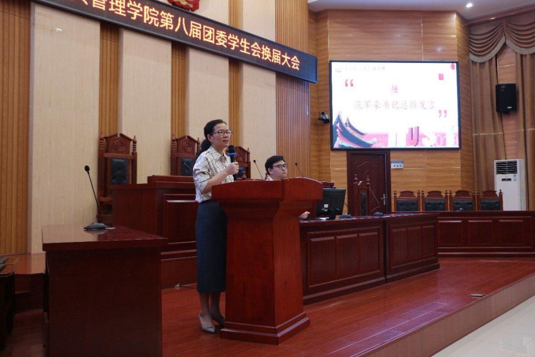大会第二项,团委学生会主席团和部长的竞选正式开始。各竞选人员分别从个人介绍、岗位认知、竞选优势、工作展望四个方面进行竞选演讲,他们慷慨激昂的陈词和对未来工作的满腔热情赢得了与会人员的多次掌声。演讲完毕后,郭志军老师、范军豪副书记分别进行了大会总结。郭老师主要讲述了执行力和工作态度问题。他指出,学生干部要提前适应未来的工作强度,做好心理准备,同时也要认真对待工作,少些低级错误和照搬照抄的行为。范军豪副书记首先对过去一年的学生会干部表示由衷感谢,并强调学生干部一定要重点提升“两个意识”:大局意识和服务意识,多为大家想,多做好服务;同时也要注重提升“五种能力”:学习能力、组织能力、协调能力、协作能力和执行能力。范书记对第八届学生会干部寄予厚望,希望他们能扎扎实实地开展工作,用行动来证明自己的能力,用行动给金牌影院