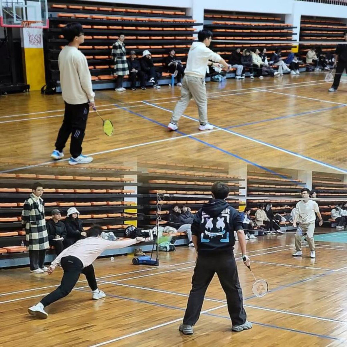 本次新生杯羽毛球赛以团体赛的形式进行,包含混双、男双、女单、男单四个项目。比赛选取团体积分及 21分三局两胜制,每个项目的优胜队伍加1积分。运动员们被随机分配为四队,分别为:“书上也妹说该叫啥队”、“对手勾对角偷后场真的不队”“要不你俩凑一队”“亲亲这边建议您退队”。