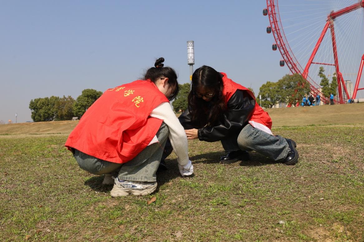的志愿者们手持长柄夹和垃圾袋,以网格化分工对河滩展开地毯式清理,躬身在草丛里仔细翻找,春日暖阳中,身着统一志愿服的清洁队伍成为湘江畔的一道亮丽风景线。经过一个多小时的努力,共清理烟头300余枚、槟榔残渣100余处,其他废弃物50余处,原本垃圾散落的河滩重归整洁.