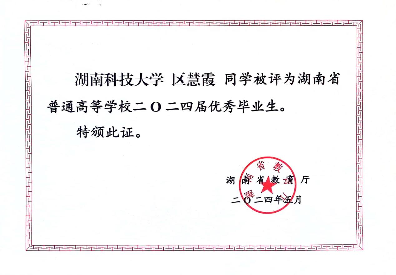 的校园里,有一位研究生学子以其卓越的学习态度、深厚的科研实力和对社会的热忱服务,赢得了师生的广泛称赞。她就是湖南省优秀毕业生区慧霞,一个以法律为剑,为社会奉献的青年学子,接下来让我们看她在无垠的学海中如何乘风破浪。