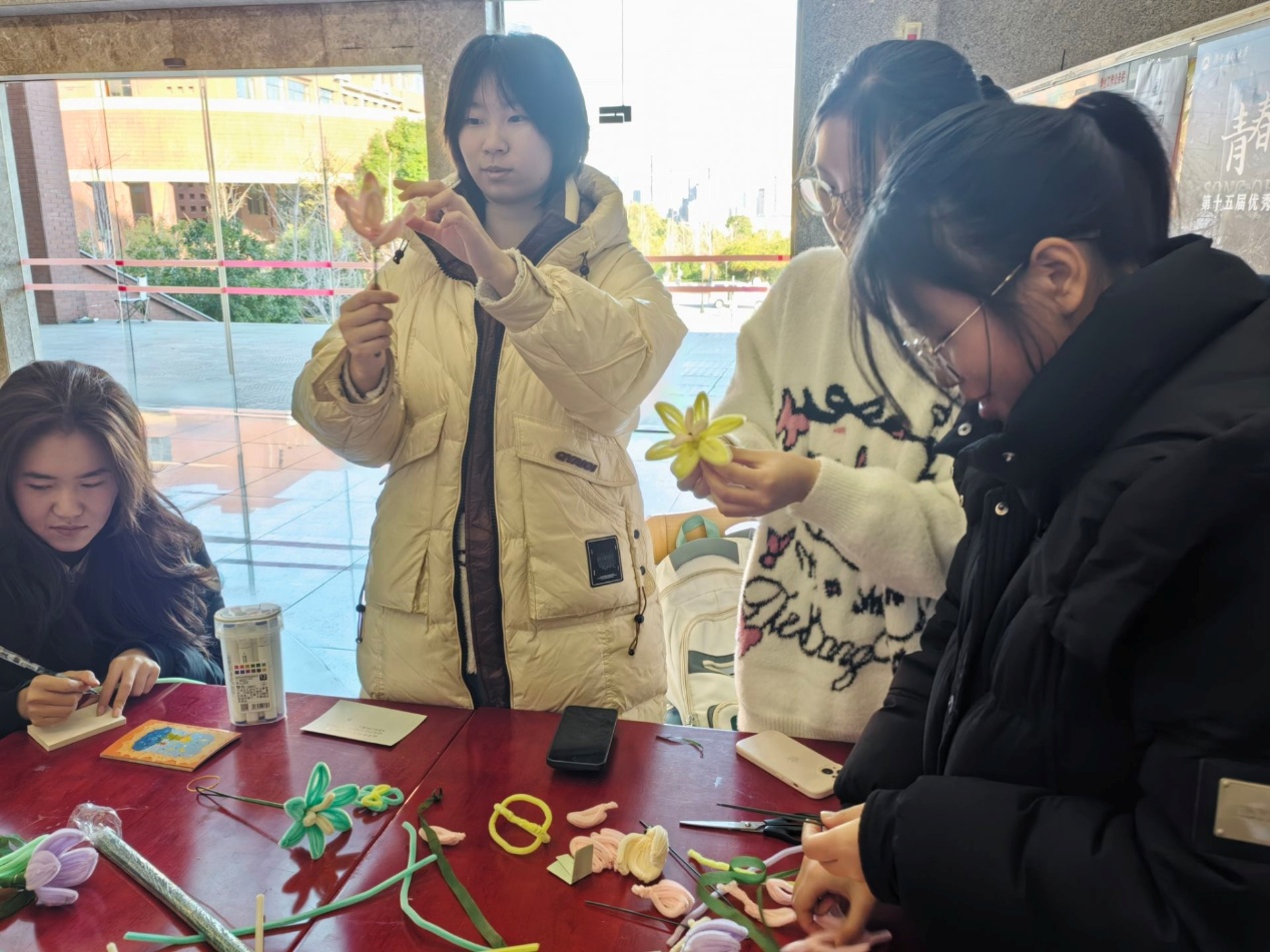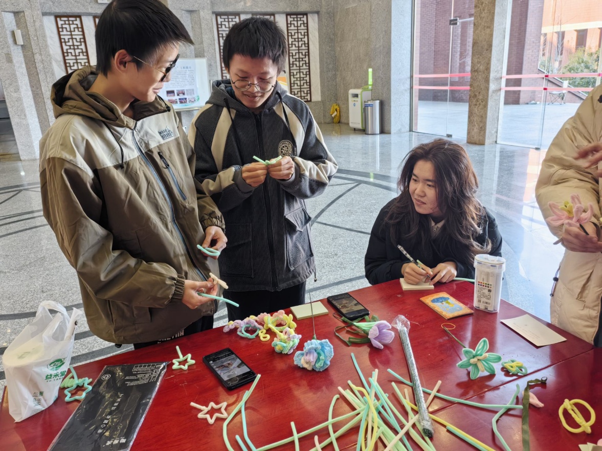 为增强同学们的心理健康意识,提升同学们的自我调适能力,金牌影院于12月15日下午在立言楼一楼大厅开展了以“花影心湖,故事摆渡”为主题的特色活动。
