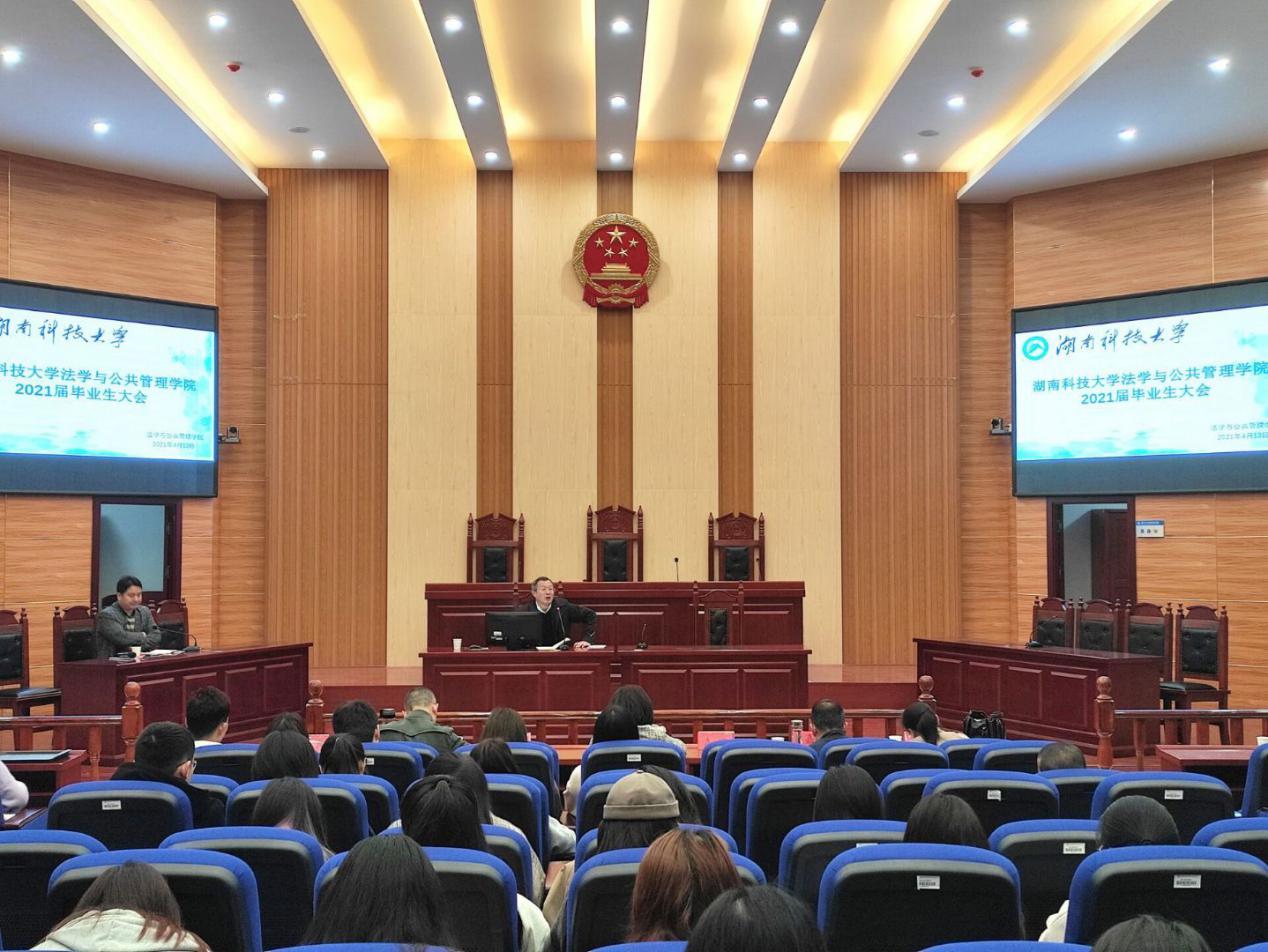 2017级毕业生就业工作,让同学们更加明了目前就业形势,引导学生积极就业、师生一心提高本年度就业率,金牌影院于4月13日下午在立言楼模拟法庭举办了2021届毕业生大会。本次大会由院党委副书记蒋会平书记主持,院长徐德刚、党委书记黄伟、系主任戴年红和马驰升以及毕业班班主任老师们莅临会场,全体在校毕业生参加会议。