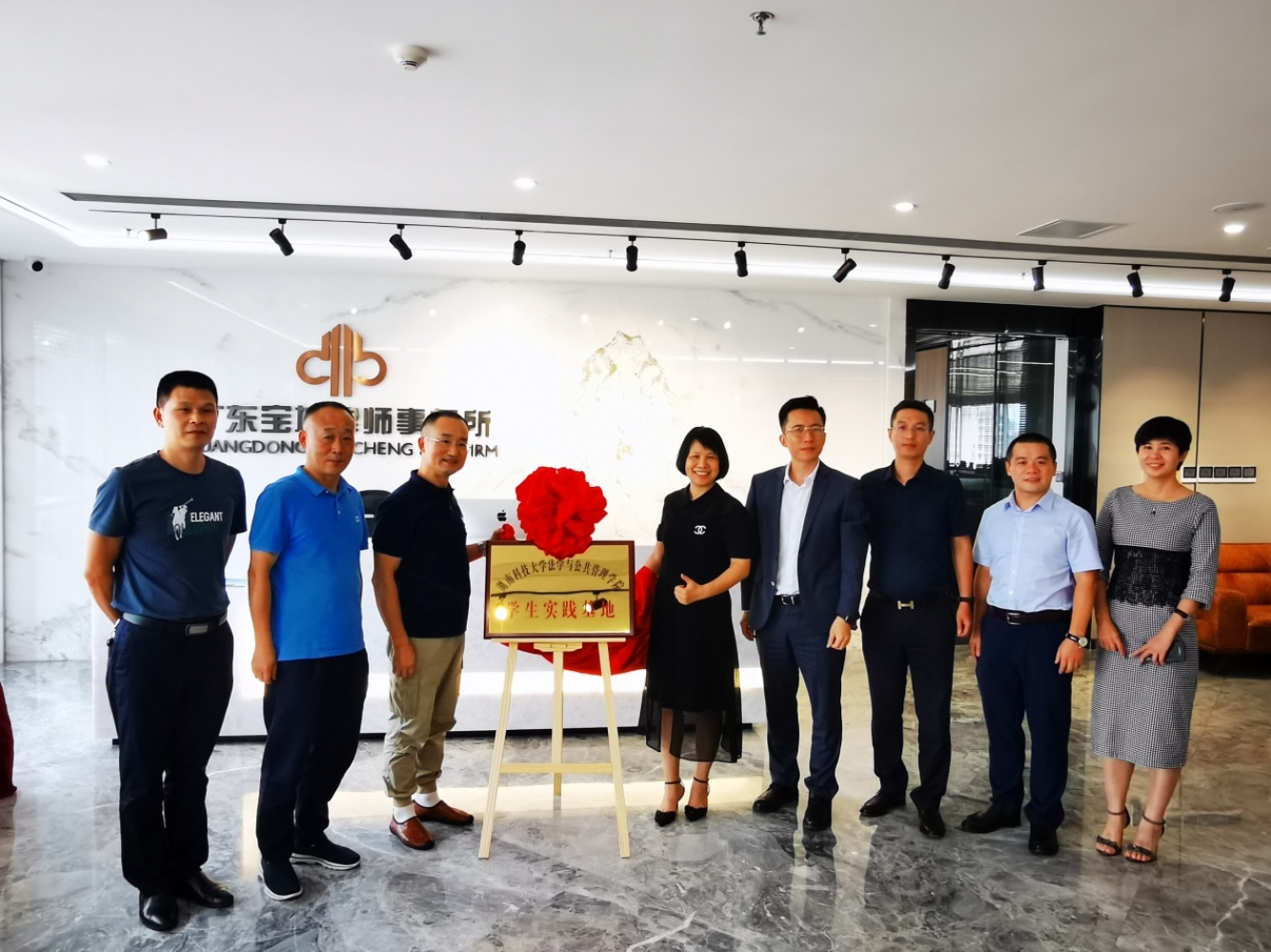 的教学科研、人才培养概况,表达了与广东宝城律师事务所加强合作交流的良好愿望。双方举行了签约挂牌仪式并合影留念。