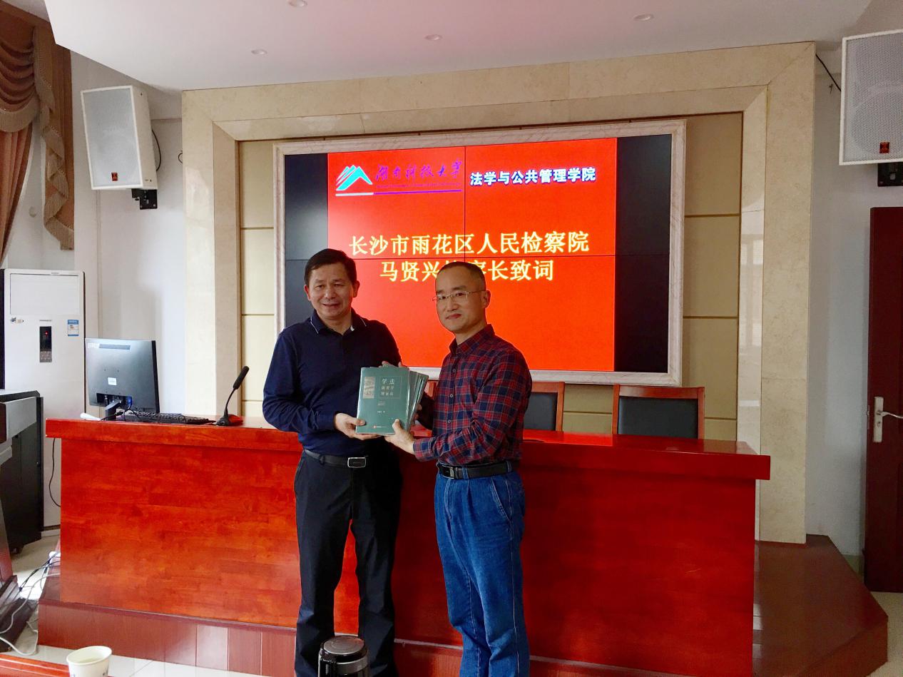 2021年5月8日,优秀校友、长沙市雨花区人民检察院党组书记、检察长马贤兴莅临金牌影院,向金牌影院捐赠个人专著《学法就要学辩证法》,捐赠仪式在立言楼A425会议室顺利举行。此次仪式由李云霖副院长主持,徐德刚院长、胡正昌副院长、邱帅萍副院长、李倩老师、章小兵老师以及部分研究生和本科生参加了本次仪式。