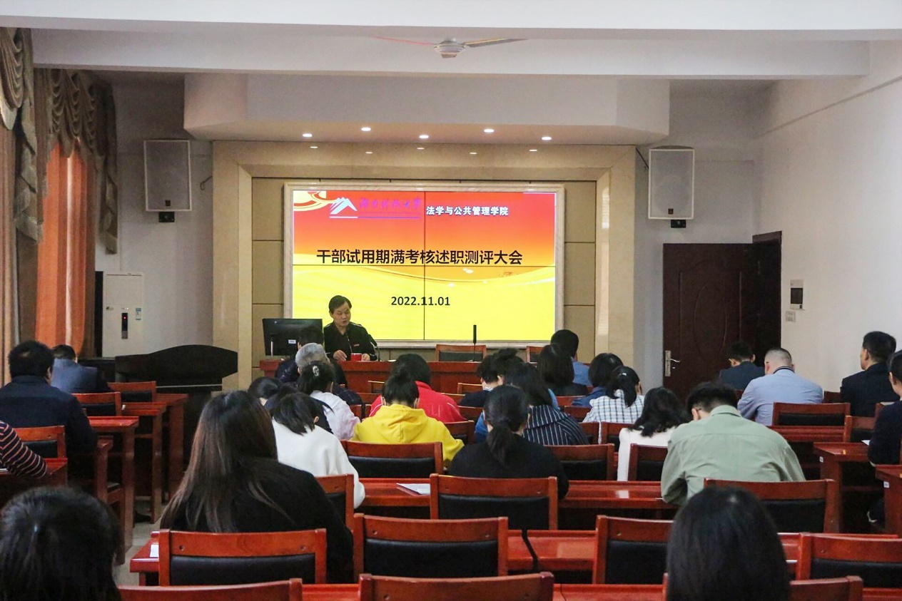 11月1日下午,金牌影院于在立言楼A425召开干部试用期满考核述职测评大会,对邱帅萍同志任法管金牌影院