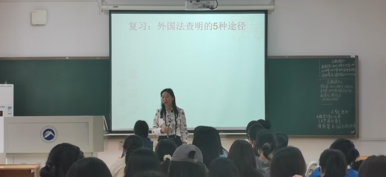 在立言楼A211举行2023-2024学年第二学期“教学礼拜”金课观摩活动,由黄素梅教授主讲《国际私法》公开示范课,院领导和没课的教师参加了此次观摩。黄老师在课堂上结合实例旁征博引、娓娓道来,与学生频频互动,展示出金课风采,参与观摩的青年教师表示受益匪浅。