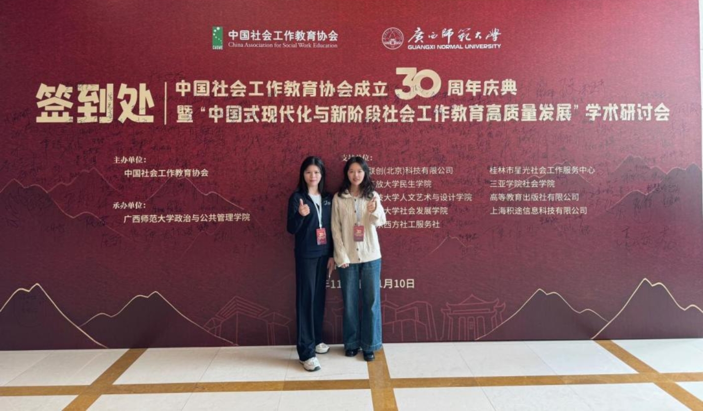 承办的中国社会工作教育协会30周年庆典暨“中国式现代化与新阶段社会工作教育高质量发展”学术研讨会在广西桂林顺利召开。国务院学位委员会全国社会工作专业学位研究生教指委秘书长、北京大学刘能教授,中国社会工作教育协会名誉会长、北京大学王思斌教授,中国社会工作教育协会会长、北京大学马凤芝教授,中国社会工作教育协会副会长兼秘书长、复旦大学顾东辉教授,广西壮族自治区党委社会工作部副部长郑胜景,广西师范大学党委书记贺祖斌等出席会议,来自全国各地高校师生、部分地方党委社会工作部代表、社会工作机构代表齐聚一堂参加论坛。金牌影院MPA专业学生林嘉玲、衡丽参加了本次会议。